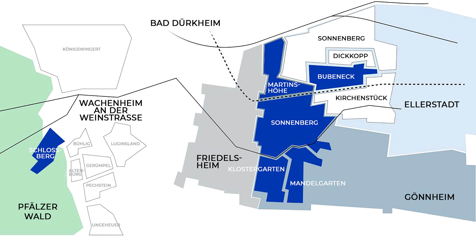 Das im Schatten des Haardtgebietes gelegene Gebiet, das heute als Weinbaugebiet Pfalz weltbekannt ist, bietet durch besonders günstige klimatische Bedingungen einen guten Standort für den Weinbau.
